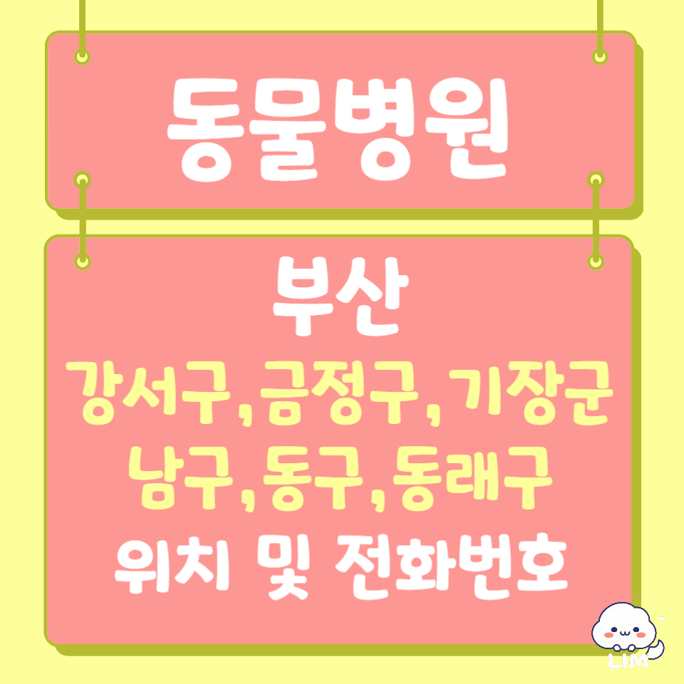 오늘은 부산(강서구,금정구,기장군,남구,동구,동래구)지역 동물병원 위치 및 전화번호 정보에 대해서 알아보겠습니다.