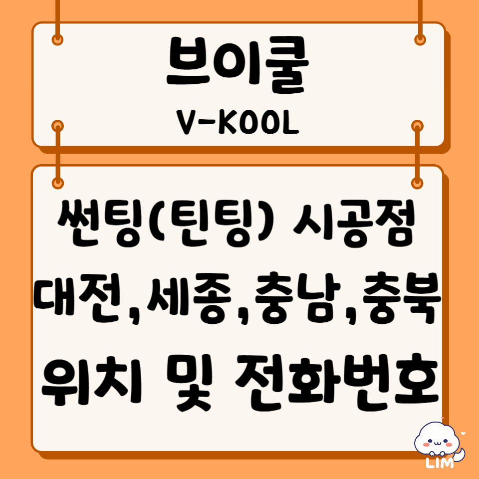 오늘은 브이쿨[V-KOOL] 썬팅(틴팅) 대전,세종,충남,충북 대리점(시공점) 위치 및 전화번호 정보에 대해서 알아보겠습니다.