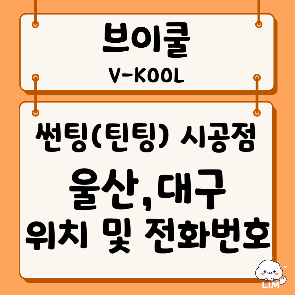 오늘은 브이쿨[V-KOOL] 썬팅(틴팅) 울산,대구 대리점(시공점) 위치 및 전화번호 정보에 대해서 알아보겠습니다.